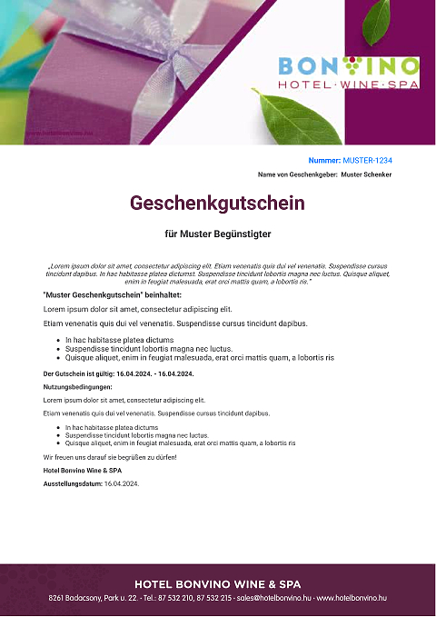 BONVINO Standard Geschenkgutschein (Vor- und Nachsaison)